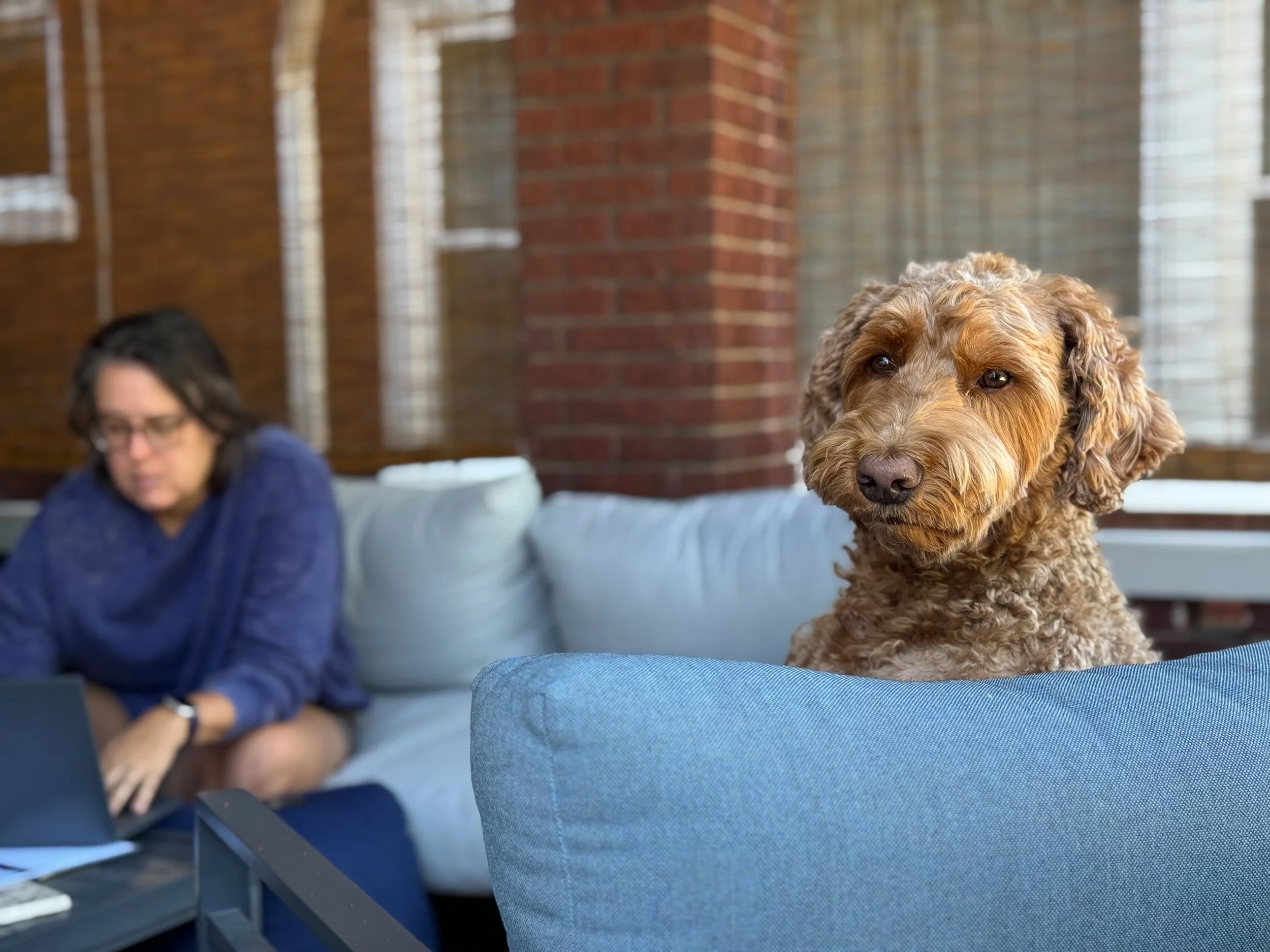 Ashley works almost exclusively from the porch during this time of year. Since we barely use it in the winter, we savor every moment we can when it’s still seasonable. Myrtle’s grown accustomed to napping on the porch couch all day while Ashley works, but occasionally she’ll hop up in the chair and watch the street, searching for passersby with their own dogs.
