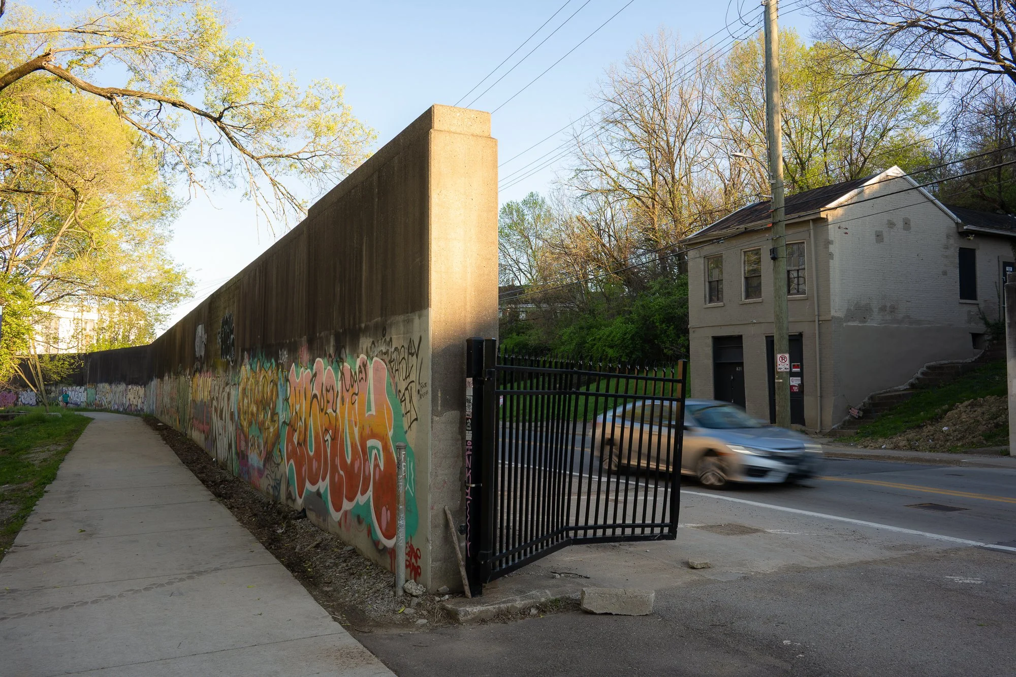When half-broken bollards aren’t enough, a canvas of a flood wall will do. As seen along Route 8 leading from Covington to Ludlow.