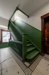 2.2.26A Lovely Green StaircaseLove the color 8K chose for this staircase. The preserved green tile and black and white motif work beautifully with this shade of green.